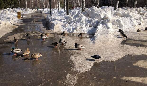 Местные жители подчеркнули, что из-за отсутствия водоема утки вынуждены передвигаться по парку. Некоторые животные пытаются пить воду из луж, образовавшихся из-за таяния снега.